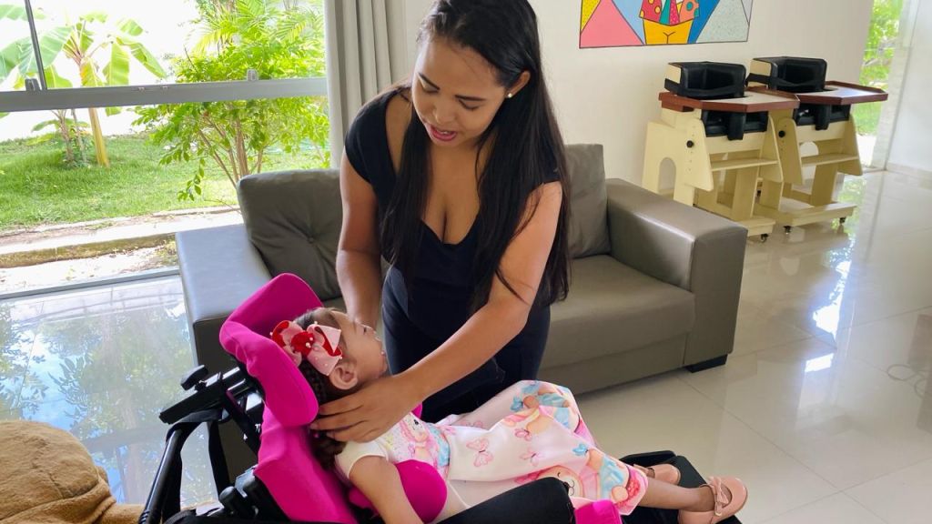 Juliana Silva, de 28 anos, mãe de Esther Gabriela, 4 anos, conta que a filha tem Holoprosencefalia, (malformação cerebral/física), e é acompanhada pela Coordenação PcD desde 2021. “O apoio que temos aqui é excelente, para ela principalmente. Sou muito grata pelo olhar que a equipe tem com os raros, e com toda a família também. Eu entrei no Colo Pra Mãe e desde então tenho aperfeiçoado os cuidados com a minha filha, no dia a dia. É um trabalho especial e muito necessário, por parte da Prefeitura, para todas nós”, disse a mulher.