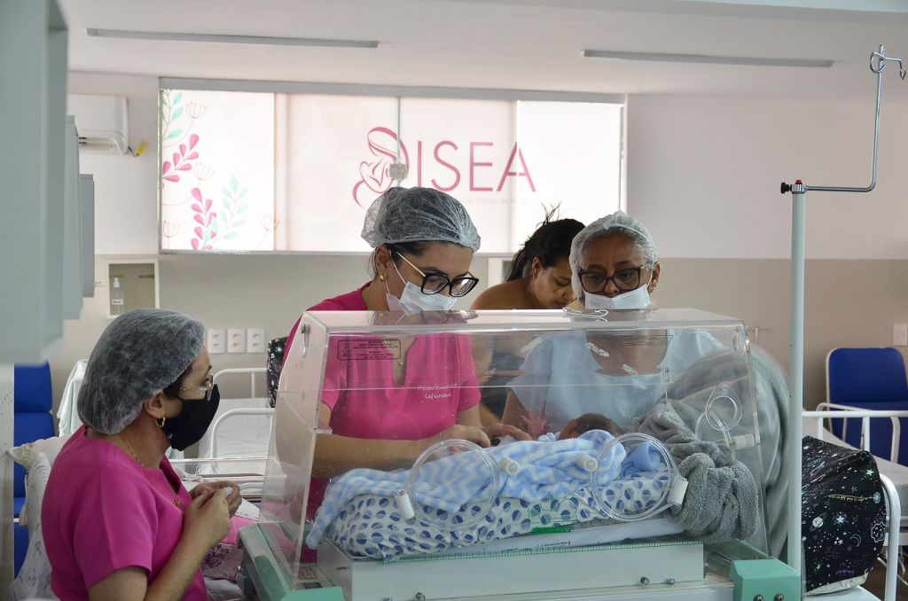 Um dos casos mais emocionantes de nascimento registrados no ano passado no ISEA foi do pequeno Kelvy Daniel dos Santos Barbosa. Kelvy nasceu de prematuridade extrema, com apenas 630 gramas, no dia 15 de março de 2023, há quase um ano. O bebê ficou internado 116 dias na maternidade, sendo 64 dias na UTI Neonatal, 9 dias na Semi-intensiva e 43 dias na Ala Canguru. Para evoluir, Kelvy fez fisioterapia e recebeu leite do Banco de Leite Humano Dr. Virgílio Brasileiro. Após este período, já estava pesando 1,830 kg, quase três vezes a mais do peso inicial.