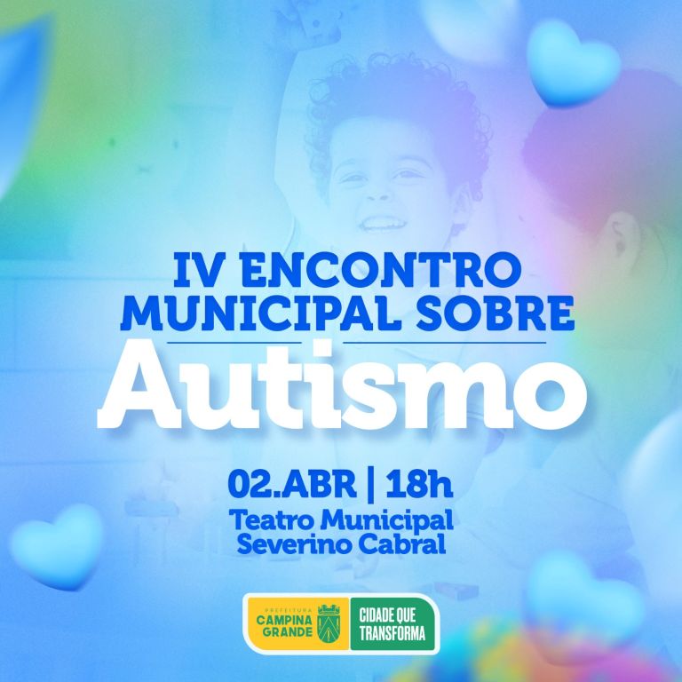 Neste dia 2 de abril é celebrado o Dia Mundial de Conscientização do Autismo. Para marcar a data, a Prefeitura de Campina Grande vai realizar o IV Encontro Municipal sobre o Autismo, que dá início à campanha Abril Azul, com ações voltadas às pessoas com o Transtorno do Espectro Autista (TEA) e também para toda a sociedade com palestras sobre o tema.